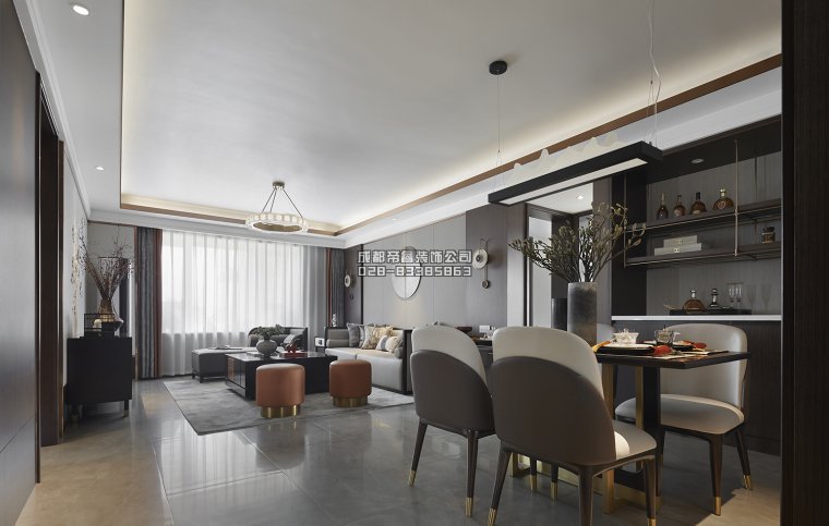 將文化古韻與現代審美相結合,經過中式基本元素與特點提煉后,又對其化繁為簡而呈現出的最終形態即是“輕奢中式風格”。在此,不同于傳統中式的是:輕奢住
