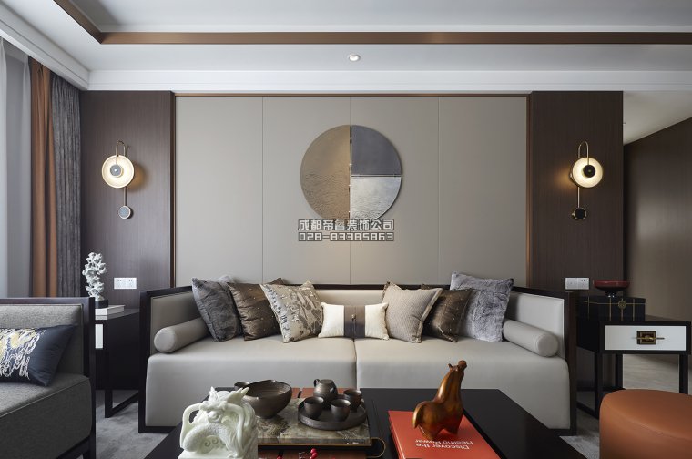 輕奢中式客廳背景墻裝修效果圖
