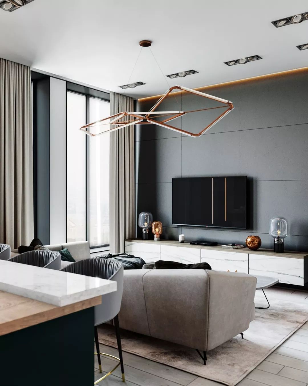 房屋裝修確定風格十分重要,如今,房屋裝修的風格多種多樣,選擇面也是十分寬廣,今天我們重點來欣賞100平米住宅現代風格室內設計效果圖。無論是質地還是外觀都給人現代奢華的視覺效果,整體空間通過不同色調來營造不一樣的效果,空調和次臥以灰色調為主色調打造出高級精致感;廚房運用綠色點綴帶來視覺沖擊效果;衛生間采用白色與金色,給人貴族般的視覺體驗。